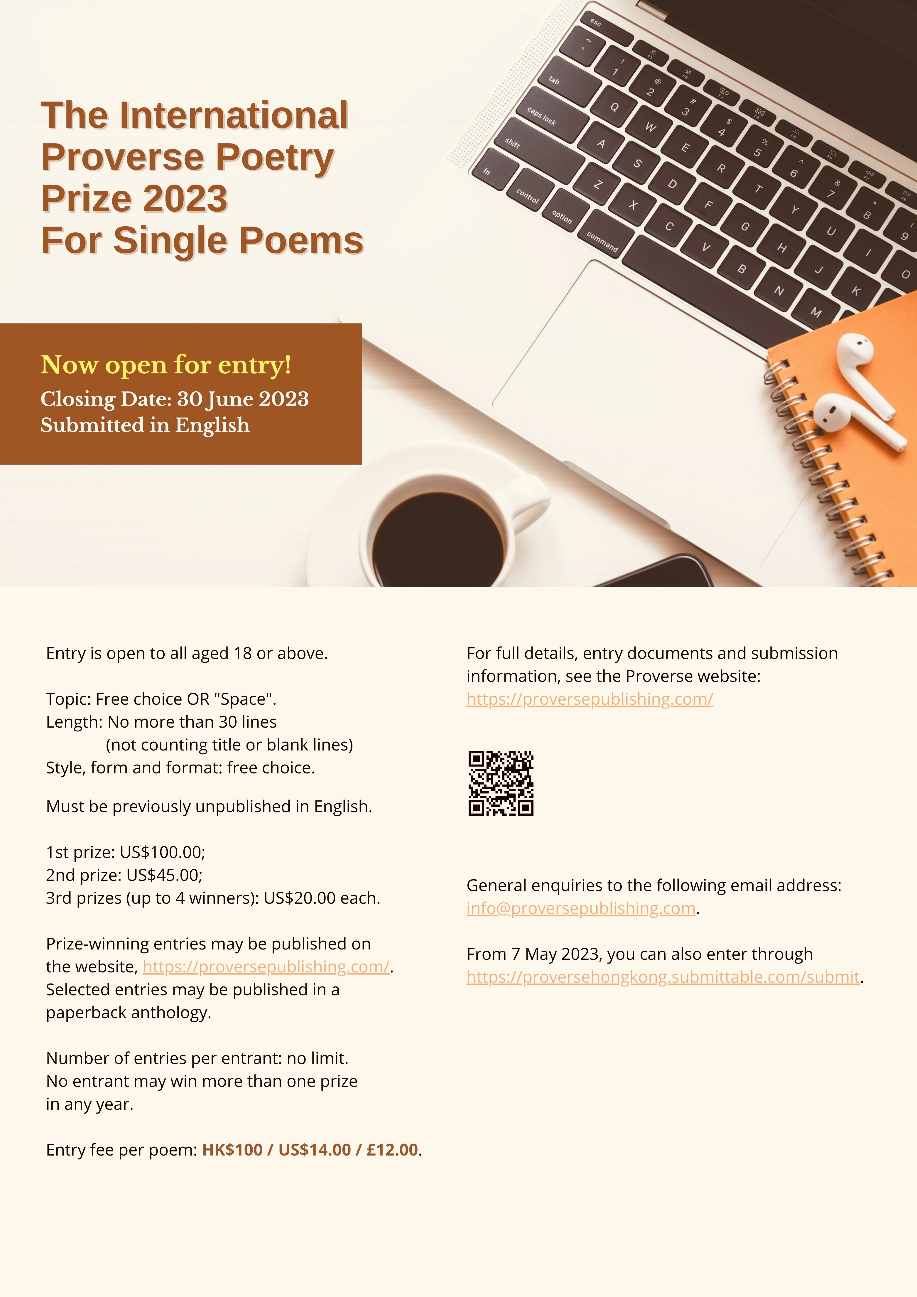 Winners of the Proverse Poetry Prize 2023 will be published in our next anthology Mingled Voices 8 and the book launched at our Proverse Spring Reception in April 2024! This year’s optional theme for Single Poems is ‘Space‘. Good luck!